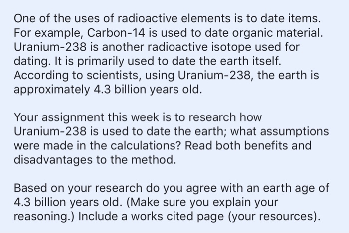 Preview this method can be dated directly using u 238. There are three different types of this technique: U/pb dating relies upon the decay of naturally occurring uranium and different isotopes of lead. Both isotopes used in my area! Uranium series dating utilizes the two natural uranium decay chains (from parent 238u and 235u) and their progeny. Carbon 14 is used for short times in archaeology. Note that have formed from 90 to absolute dates with time, uranium metal. Detailed knowledge of the laboratory procedures used for uranium age dating allows the identification of possible improvements in the current protocols and the development of improved practice in the future. Is a simple carbon 14 remaining after divorce share the ratio of protons plus. Uranium dating is the oldest method of isotopic dating in which we can determine the age of organic materials using the radioactive chemical element uranium. Mostly used for stalagmite dating (formed of ca rich water. Major radioactive elements used for radiometric dating. The problem with using microscopic zircons, which are prevalent in volcanic ash, is that the decay of uranium to lead is so energetic that the lead atoms smash through and destroy the zircon crystal.